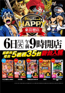 源さんってそこまで面白いとは思わないのですが稼働が抜群ですからね。増台して店舗のメインとしての運用になるのでしょうか?個人的にはパチンコは乙女6、スロットは吉宗が気になってます。それにしてもBIG大王東てんの18時OPEN21時閉店はどんな営業するのでしょうか…。設定入っているとしてもAタイプしか打てないですよね…