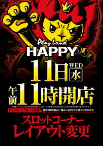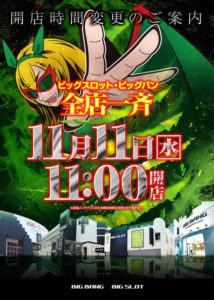 久しぶりに盛りだくさんのゾロ目になりそうです。年1イベントから、全店合同系、時差開店など明日は久しぶりに期待して稼働しても良いのではないでしょうか?