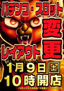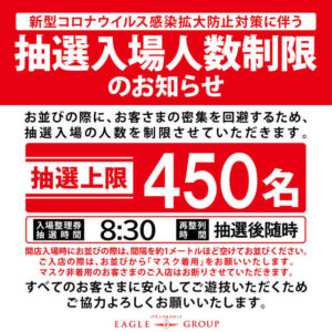 今年初の「9」のつく日、正月期間もゲリラ的に攻めていたイーグルですが、初の「9」のつく日はどうなるのでしょうか…?かなりムラのあるイメージなので、期待と不安が入り混じっております…