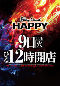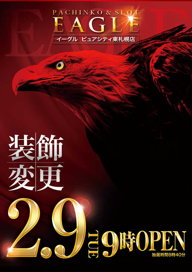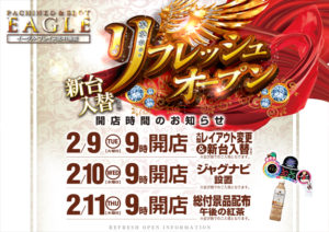 「9」のつく日はイーグルvsHAPPY2日目。今回はR-1南8条店が入替と被ってますので最新台の政宗3が脅威の20台導入!!ということでいきなり高設定の政宗3が打てる可能性があるのではないでしょうか?