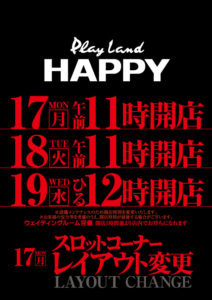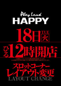 【5/18】DOKO行く?まとめ DOKO行く? 2021.05.17 HAPPY 藻岩店 西町店 厚別通り店 栄町店 イーグル R-1南8条店 麻生店 伏古店 ライジング 琴似店 おわりに 「8」の付く日、HAPPY一択になりそうです。広告自粛の波が徐々に波及していますね……。暗黒期が再び訪れそうです。 設定も自粛ムードになってしまうのでしょうか???