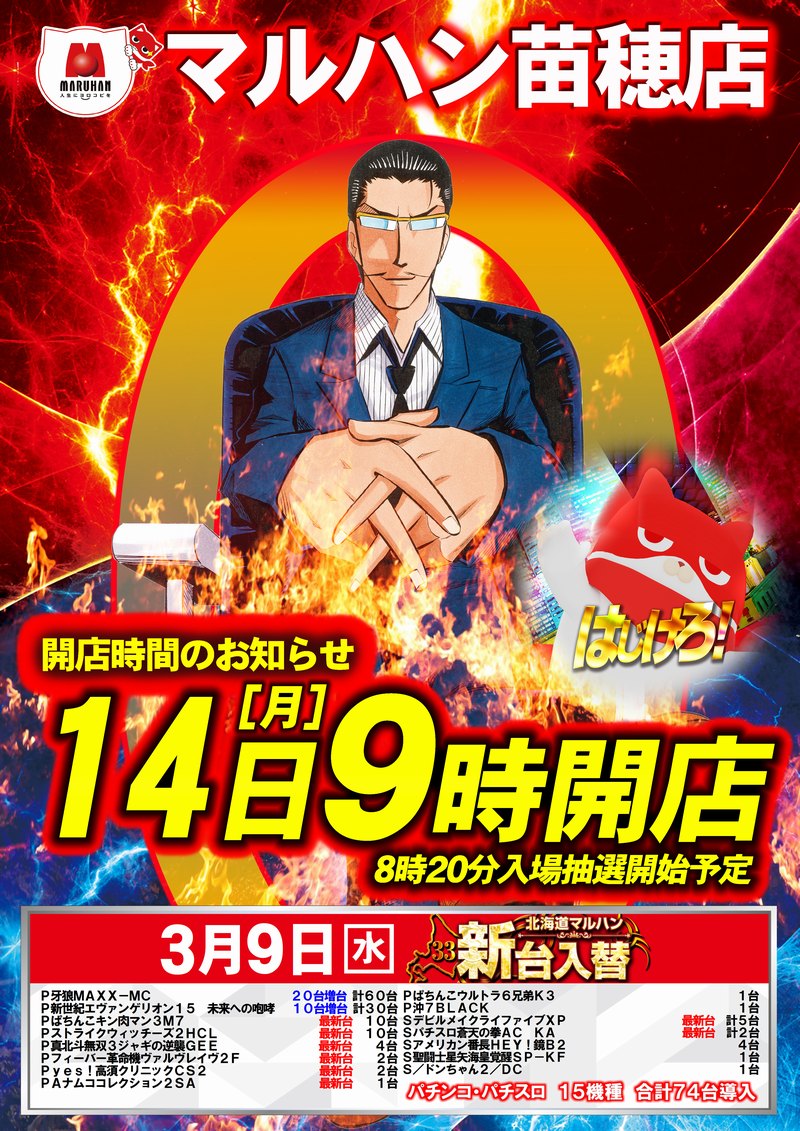 【3/14】DOKO行く?まとめ(暗黒の月曜日) DOKO行く? 2022.03.13 マルハン 苗穂店 イーグル R-1南8条店 麻生店 おわりに 「4」のつく日。月曜日、久しぶりに厳しい状況になりそうですね。ココは翌日の5の日に向けて英気を養うしかないですね。