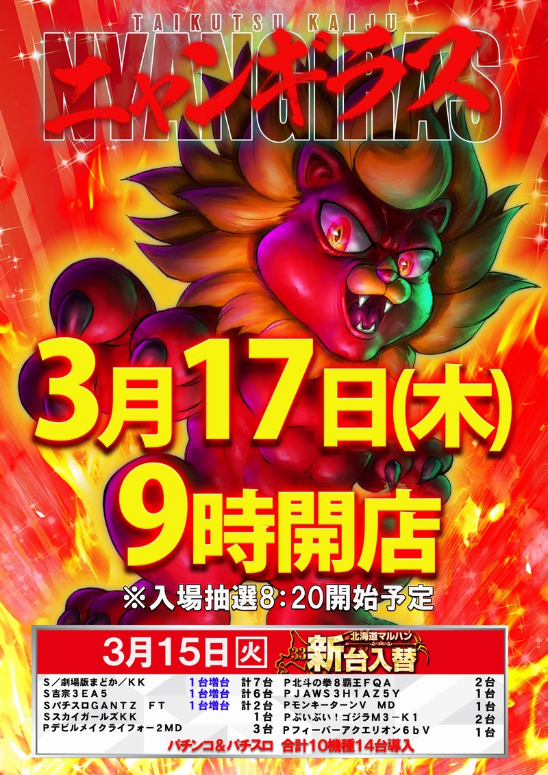 【3/17】DOKO行く?まとめ(7は戦わずファン感視野?) DOKO行く? 2022.03.162022.03.17 マルハン 苗穂店 手稲店 琴似店 HAPPY 白石店×東苗穂店 西宮の沢店 二十四軒店 八軒店 イーグル 麻生店 ベガスベガス 大谷地店 発寒店 おわりに 「7」の付く日。対抗が少なく、どこもファン感謝デーのポスター一色ですね。マルハン以外の選択肢は流石に無いかな?といった印象です。 週末から始まるファン感。ファン感謝デーと謳いつつ大回収デーのお店もたくさんあるので気を付けたいところ…。週末は混みそうだな…。
