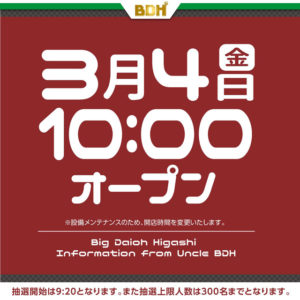 【3/4】DOKO行く?まとめ(誰来る?) DOKO行く? 2022.03.03 BDH ひまわり 豊平店 月寒店 マルハン 苗穂店 イーグル 北郷店 伏古店 麻生店 おわりに 「4」の付く日。BDHがまたまたスロパチ風告知、前回はじゃんじゃんさんが来たみたいですが、今回も誰か来るんでしょうかね?北海道は来店ダメなはずだけどプライベートだからという感じなのでしょうか?明日のBDHからも目が離せないですね!