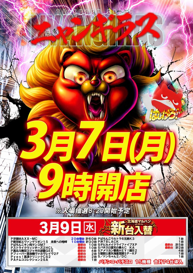 【3/7】DOKO行く?まとめ(マルハンvs) DOKO行く? 2022.03.06 マルハン 苗穂店 手稲店 HAPPY 白石店 東苗穂店 厚別通り店 手稲前田店 八軒店 二十四軒店 西宮の沢店 ベガスベガス 札幌店 大谷地店 イーグル 麻生店 おわりに 「7」のつく日。一時はベガスが対抗して双龍?っぽいことやって対抗してましたがどうやら決着はついたようで、マルハンとは戦わないスタイルに決めたようですね。 と思った矢先横からHAPPYが時差、時差、時差…。7の日にマルハンの牙城を崩そうと動き始めたのでしょうか??時差のHAPPYも気になる一日になりそうです。