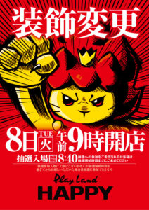 「8」の付く日。いつものポスター出ていないHAPPY。対抗はポスター出ているHAPPY&イーグルR-1&麻生。2店舗を行き来するのは慣れたものです。