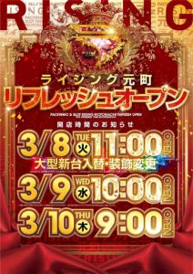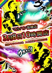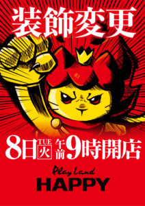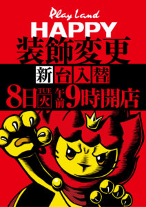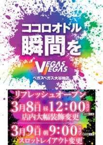 気になるポスターはベガスベガス大谷地店の12時OPEN。ココロオドルと書かれるとあの懐かしい曲が頭に流れますね…。このスプラトゥーン的なのはレインボーということなのでしょうか??