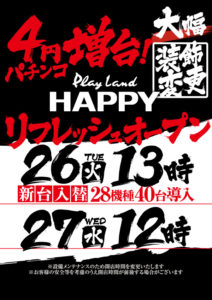 マルハン以外も色んなお店がGW前ということで、やる気ありますよ!!リフレッシュですよ!!(出すとは言ってない…ニヤリ)と詐欺師のように手招いてきていますね。