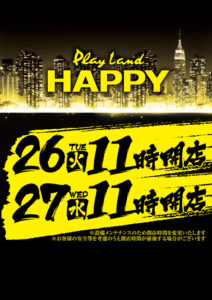 王者のHAPPYも結構色々なお店で仕掛けて来ていますね。さらに、ついに「東苗穂」・「白石」も抽選を導入してくれる見たいなので「7」の付く日のセカンドチャンスを狙いに行く機会も増えるのではないかと思います。(白石店は28日から)
