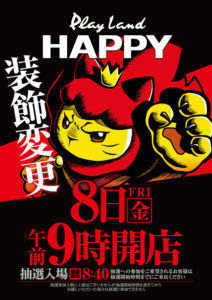 やはり本命はHAPPYのポスター出ていないお店ですかね。月初なんでいきなり回収!ということもないと思いますので安定してツモりに行けると思います。