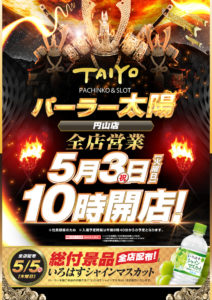 【5/3】DOKO行く?まとめ(TAIYO6確でたらね…?) DOKO行く? 2022.05.02 イーグル 麻生店 TAIYO ベガスベガス 発寒店 おわりに 「3」の付く日。GW中ですのでもちろん設定には期待できない状況です。TAIYOも全店営業継続中なので私もTAIYOで6確出たよ!って情報継続して募集したいと思います。イーグルがジャグ示唆?なので狙えるとしてもそこぐらいでしょうか??マルハン苗穂の確変状態がいつ解除されるかというのも見どころだと思います。