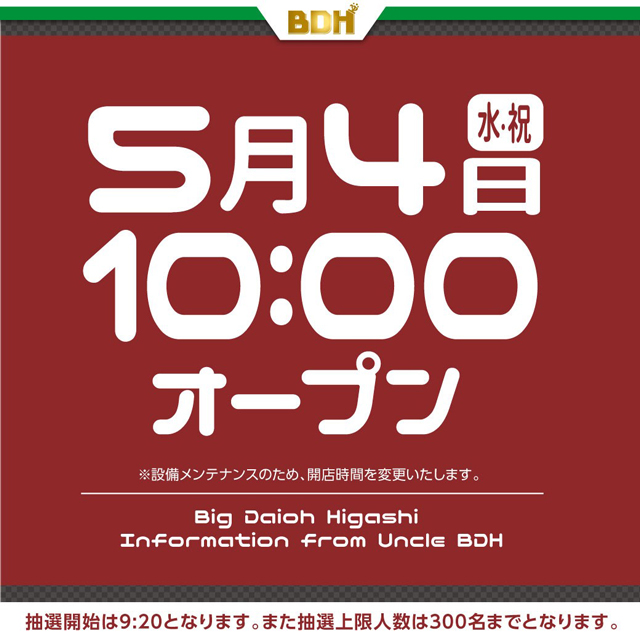 「4」の付く日。翌日が5月5日のゾロ目なのでベガスベガスの年イチをはじめ他のお店もGW中で唯一放出する可能性があるのはここではないでしょうか……??