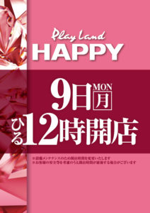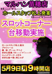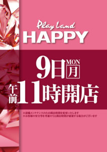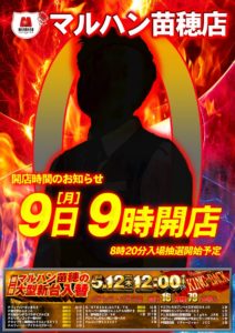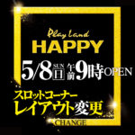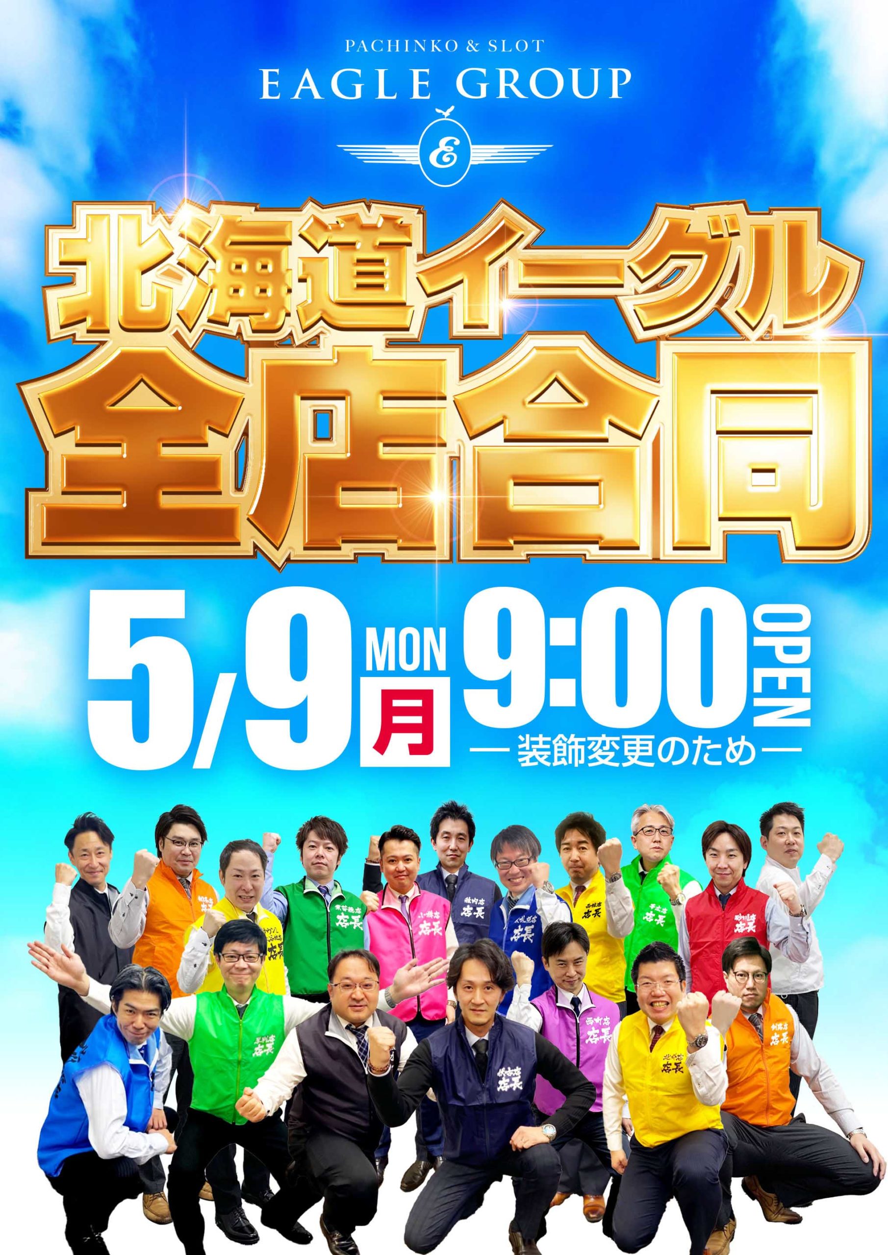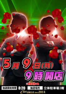 「9」のつく日。GWも終わりイーグルの旧特定日からスタートです。9の日に最近良く見かける店長達勢ぞろいのポスターでやる気アピール??でしょうか??HAPPYも対抗で時差開店ですが、ポスターからはあまり気合が感じられませんね……。