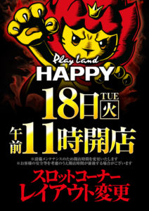 「8」の付く日。HAPPY&ライジングの特定日。いつも通り強いHAPPYで打つのが一番安定しそうですね。