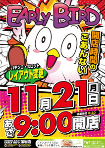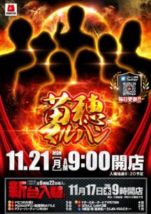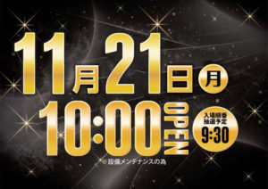 BDHも特定日ですが……スマスロ導入のための工事なのか店休です。次の日がスーパーオープンということで過去の実績から見ても11/22が期待大ということになりますね!