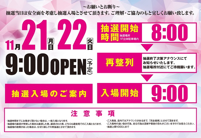 「1」のつく日。11/21年イチのメガエムズ1121西岡店。普段の特定日は期待できないですが、年イチだけは違います。昨年は、