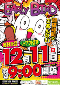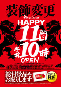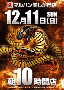「1」の付く日。BDHの特定日。基本的にはBDHが第一候補になると思います。対抗として、HAPPYの双龍やマルハンの全店一斉が考えられますが、本当に放出する意思があるのであればガンダーラ系や四神獣系を合わせて実施してくると思いますので……。美しが丘店のアナコンダも傾向が未だよくわかりませんし……。(アナコンダの公約はコチラ)