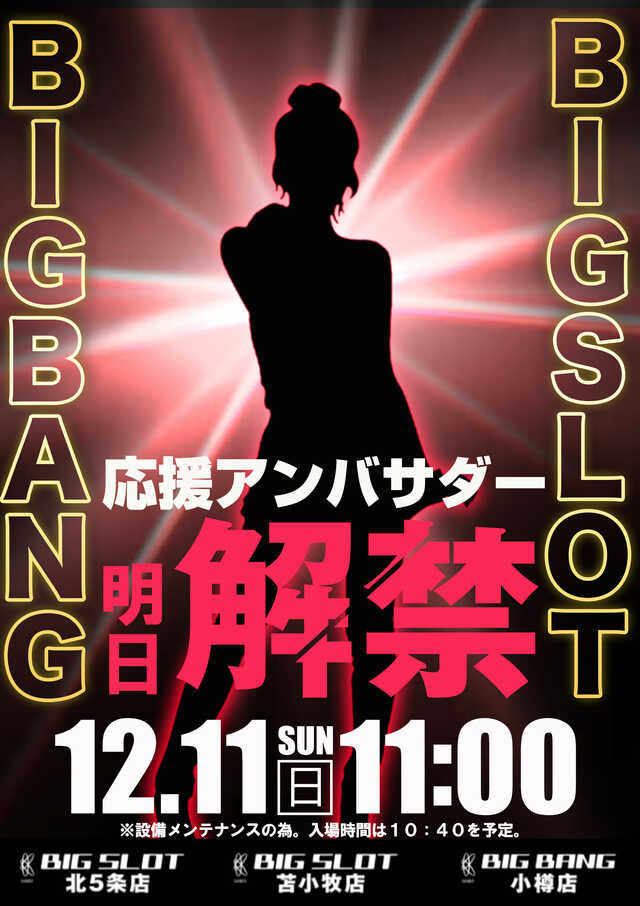 ビックスロットはスマスロの導入もなく、月寒店が閉店しお店も残すところ3店舗になってしまいました……。そろそろ逝くのでは……と囁かれている中、起死回生の最後のチャンスの応援アンバサダーの就任。明日の出来次第では下手すると……。