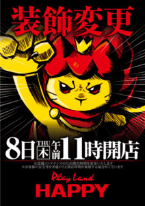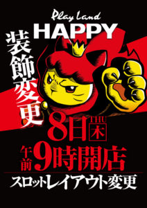 「8」の付く日。HAPPY&ライジングの特定日。本命は鏡大量導入のHAPPY南6条&HAPPY麻生でしょうか??対抗は