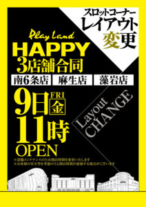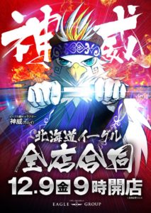 「9」の付く日。イーグルの特定日。まだR-1南8条店と麻生店のイーグル2代巨頭には鏡が入っていませんが、やはり本命はこちらの2店舗かと……。