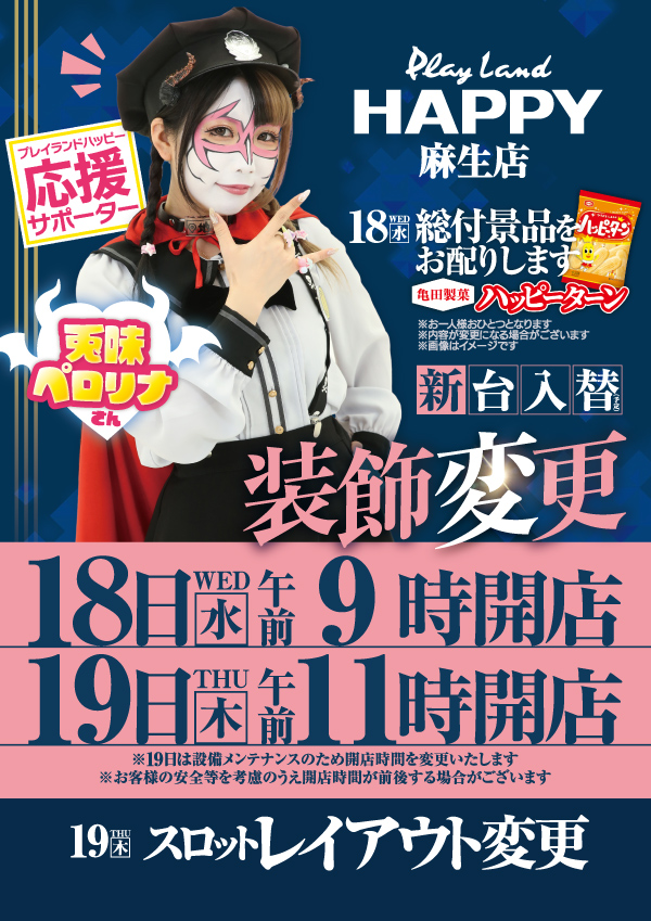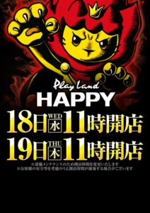 「8」の付く日。HAPPYの特定日。ペロリナポスターが出ている店舗と出ていないお店があるので、これがお店のやる気の度合いなのであればやはりペロリナポスターが出ているお店を狙っていきたいところ。