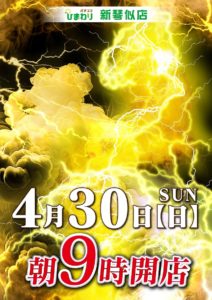 「0」の付く日。ひまわりの特定日。ポスターの量から察するにGWなのでここは我慢でしょうね……。5ゾロまでは我慢がまん……。