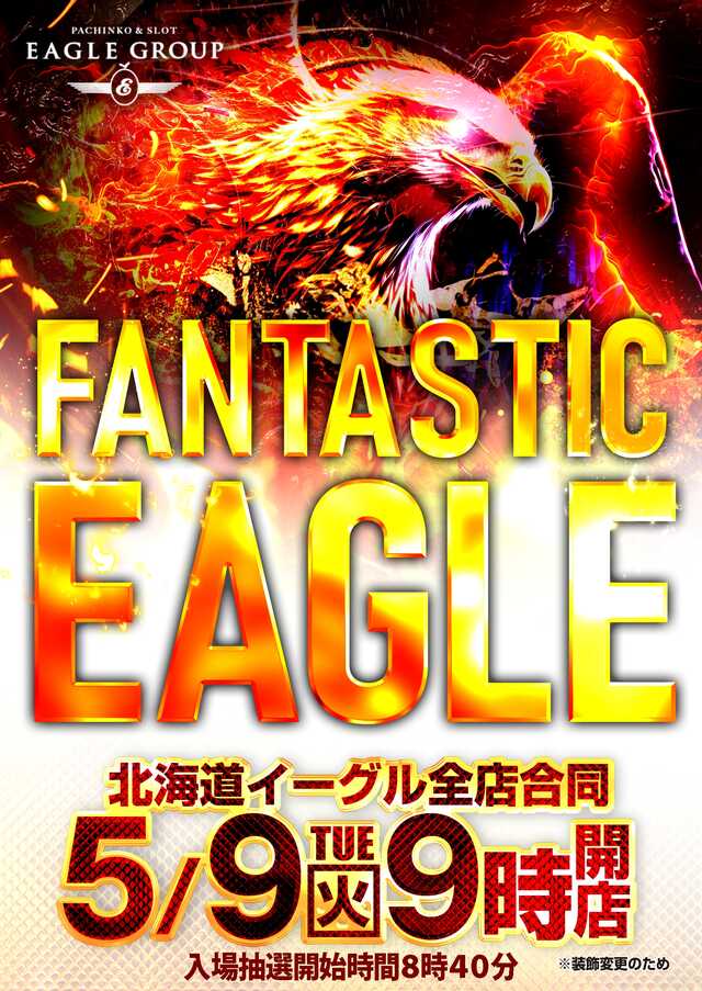 「9」の付く日。イーグルの特定日。GWも終わり特定日もいつもの賑やかさを取り戻していってくれると期待しています。