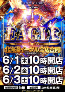 6月年イチは6月6日のEBH!周年はネットで調べただけですが手稲マルハンが閉店してしまったのでなさそうですね……。