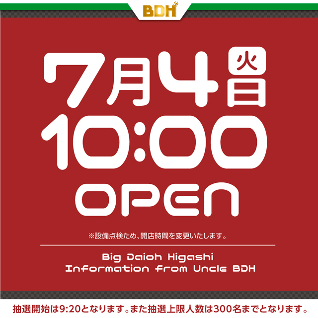 「4」の付く日。特定日なし。BDHがスロパチ広告なので台数も少ないので抽選突破出来ればツモれる可能性はありますね。