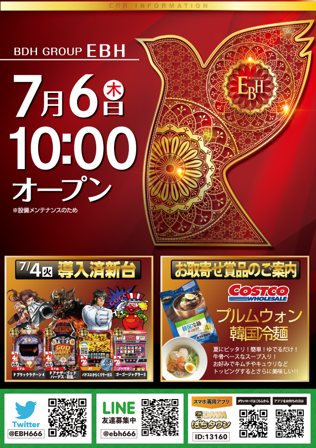 「6」の付く日。EBHの特定日。翌日に7月7日の祭りを控えているので過度な突っ込みは抑えながの稼働になりそうですね……。