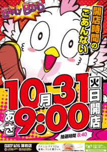 【10/31】DOKO行く?まとめ(血のハロウィン) DOKO行く? 2023.10.30 BDH マルハン 琴似店 イーグル 麻生店 アーリーバード藻岩店 おわりに 「1」の付く日。BDHの特定日。もう大手は11月を見ているみたいで、月末は全然期待できそうにないですね……。血のハロウィンになりそうな予感……。