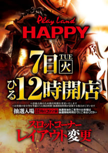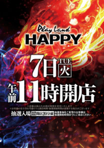 「7」のつく日。マルハンの特定日。マルハン以外にもイーグル東札幌店周年EBHのリフレッシュ、対抗のHAPPYなど選択肢は多数あるのでどこを狙うかが大事な1日になりそうです・・・・・・。
