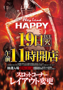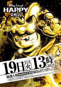 【12/19】DOKO行く?まとめ(周年ムーブ) DOKO行く? 2023.12.18 イーグル北41条店(周年) HAPPY手稲前田店(周年) イーグル HAPPY 栄町店 南6条店 藻岩店 厚別通り店 麻生店 ひまわり 駅前タワー店 マルハン 苗穂店 琴似店 おわりに 「9」のつく日。イーグルの特定日。周年も2店舗ありますね。 ・イーグル北41条店 9時開店 ・HAPPY手稲前田店 12時開店 イーグル北41条店→HAPPY手稲前田の周年ムーブが一番良い動きの気がしますね・・・・・・。