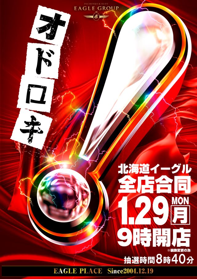 「9」の付く日。イーグルの特定日。前回は麻生が久しぶり?に結構な放出営業でしたので、今回も頑張ってほしいところ……。