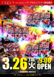 「6」の付く日。EBH&M’s666の特定日。他はちょっと厳しそう……。マルハン苗穂の潜水艦やイーグル東札幌の3台並びの3列など気になるポスターはありますが、さすがに怖いですね……。