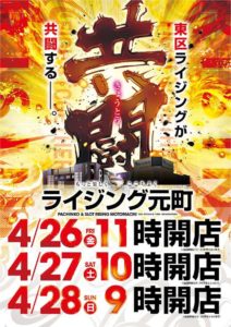 他にも店休明け増台やスロット時差開店など、盛りだくさんな1日になりそうです。