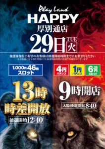 【10/29】DOKO行く?まとめ(何かのメッセージ?) DOKO行く? 2024.10.28 イーグル R-1南8条店 麻生店 HAPPY 南6条店 麻生店 厚別通り店 栄町店 ひまわり 豊平店(パチ7取材) 駅前タワー店 マルハン 苗穂店 ベガスベガス 狸小路店(アップるん取材) 札幌店(パチ7取材) おわりに 「9」の付く日。イーグルの特定日。金わっしーくんが何やらメッセージを伝えているのでしょうか??対抗は金ハッピーくんの南6条と麻生のいつもの9の日ですね。