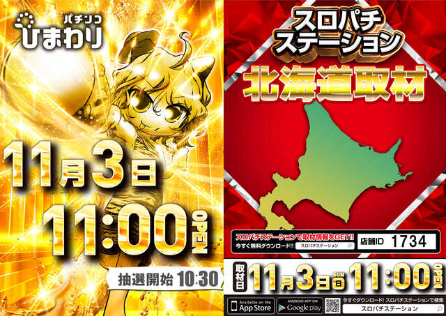 【11/3】DOKO行く?まとめ(美し清田ラインがアツイ!?) DOKO行く? 2024.11.02 マルハン 美しが丘店 苗穂店 琴似店 ひまわり 清田店(スロパチ取材) 豊平店 HAPPY 西宮の沢店 ベガスベガス 発寒店(アップるん取材) 札幌店(パチ7取材) TAIYO おわりに 「3」の付く日。3連休中日。ひまわり清田のスロパチ取材、マルハン美しのストロングスタイル。ここらが狙いでしょうか……。