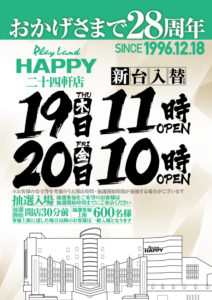 イーグル北41条店は9の付く日プラス周年で間違いなさそうですね……!!周年以外にもイーグルのR-1や麻生、対抗のHAPPY南6条&麻生あたりも強いので周年狙い以外も出来そう……。