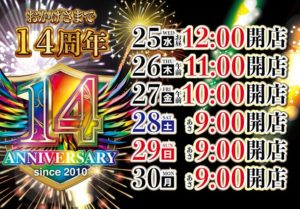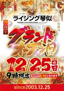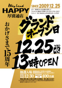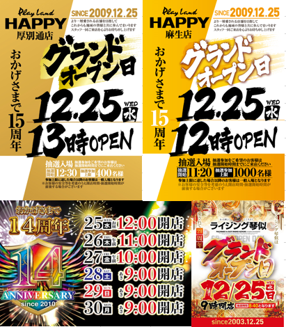 【12/25】DOKO行く?まとめ(周年の優劣!?) DOKO行く? 2024.12.24 HAPPY麻生店(周年) HAPPY厚別通店(周年) ライジング琴似店(周年) 甲子園西町店(周年) ベガスベガス ひまわり 駅前タワー店 豊平店 新琴似店(パチ7取材) HAPPY 手稲前田店 西町店 イーグル 北郷店 麻生店 おわりに 「5」の付く日。ベガスベガスの特定日。周年は… ・HAPPY麻生&厚別通 ・甲子園西町 ・ライジング琴似 の4店舗となっています。周年日が重なると優劣をつけざるを得ないのは世知辛いところですがやはり本命はHAPPY麻生ですかね……。