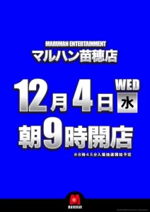 【12/4】DOKO行く?まとめ(二十四) DOKO行く? 2024.12.03 HAPPY 二十四軒店 麻生店 マルハン 苗穂店 おわりに 「4」の付く日。特定日なし。周年RUSHまでは我慢ですかね……HAPPY二十四軒店くらいしか選択肢が……。