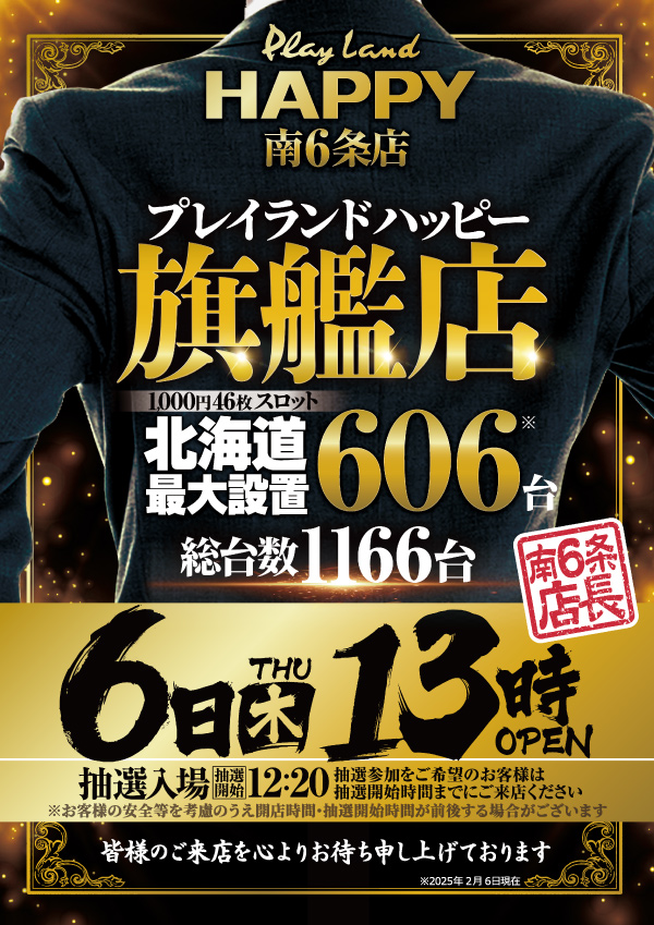 【2/6】DOKO行く?まとめ(6条6の日店長降臨) DOKO行く? 2025.02.05 HAPPY 南6条店 二十四軒店 エムズ元町店(VEPPAN) EBH M’s666 マルハン 苗穂店 おわりに 「6」の付く日。EBH&M’s666の特定日。特日以外で気になるのはHAPPY南6条でしょうか……??6条なので6の付く日にこれから力を入れていく感じですかね……??