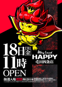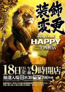 「8」の付く日。HAPPY&ライジングの特定日。最近機種の商品入荷ポスターが増えてきていますが、広告の規制が厳しくなったそうで(情報遅い)機種に関して色々言えなくなったみたいですね……。