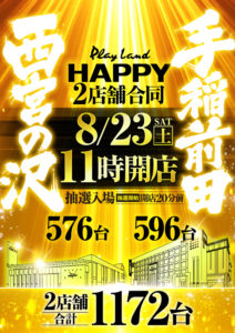 【8/23】DOKO行く?まとめ(強イベ祭り?) DOKO行く? 2025.08.22 マルハン 苗穂,美しが丘店 琴似店 札幌北店 月寒店 ひまわり 真駒内店(東リベ,炎炎取材) HAPPY 東苗穂店,厚別通店 厚別店 西町店 藻岩店 栄町店 西宮の沢×手稲前田店 イーグル R-1南8条,東札幌,厚別店 ベガスベガス 発寒店(スーパースターヒカルくん取材) 栄町店(戦極 電光石火) アーリーバード藻岩店(城姫なな来店,ネクスタ来店取材) ライジング おわりに 「3」の付く日。来店・取材系はちょっと弱そうですが、強イベが盛りだくさんですね……。迷いますね……。