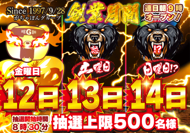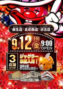 【9/12】DOKO行く?まとめ(Gの本気がみられる!?) DOKO行く? 2025.09.112025.09.12 がちゃぽん マルハン 美しが丘店 イーグル 麻生×北41条×伏古店(※伏古20スロ11時) ひまわり 豊平店(エヴァ,沖ドキ取材) 真駒内店(アイジャグ取材) ベガスベガス 狸小路店(せせりくん,勝山のんこ来店) アーリーバード藻岩店(トレンドタイム) おわりに 「2」の付く日。がちゃぽんの特定日。創業月間でド派手にやっていますし前回の特日もかなりの放出営業でしたので今回の3連休も期待でしょうか……?