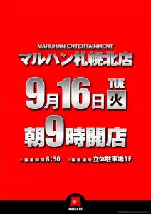 【9/16】DOKO行く?まとめ(火曜日スタートの週初め) DOKO行く? 2025.09.15 M’s元町 M’s666 EBH ひまわり 新琴似店(スロパチ取材) HAPPY 屯田四条店 マルハン 札幌北店 ベガスベガス 大谷地店(戦極 電光石火) アーリーバード藻岩店(アーリー取材) おわりに 「6」の付く日。EBH&M’s元町,666の特定日。祝日含みの3連休が終わり火曜日からの1週間がスタート……。