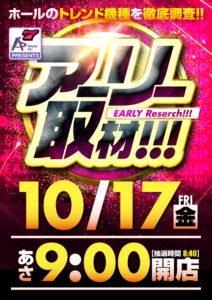 【10/17】DOKO行く?まとめ(選ばれるワケ) DOKO行く? 2025.10.162025.10.17 マルハン HAPPY 二十四軒店 東苗穂,白石店 麻生店 藻岩店 屯田四条店 西町,西宮の沢店 栄町店 手稲前田店 イーグル 麻生×北41条×伏古店 ひまわり 真駒内店(喰種,アイジャグ取材) ベガスベガス アーリーバード藻岩店(アーリー取材) おわりに 「7」の付く日。マルハンの特定日。対抗はいつものHAPPYで特段目立った変化はなさそうです……。最近お店のオリジナル取材が増えてきましたね……。信頼度はどうなのか早めにチェックしておきたいところ……。