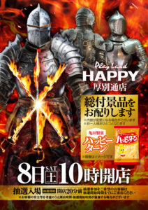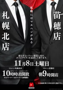 【11/8】DOKO行く?まとめ(各地で激戦!?) DOKO行く? 2025.11.07 HAPPY 厚別通店 藻岩,西宮の沢,西町店 厚別店 栄町店 ひまわり 豊平店 真駒内店(ジャグ,喰種取材) 篠路店(ジャグラー取材) 新琴似店(情熱ひまわり取材) イーグル 麻生店 マルハン 札幌北×苗穂店 札幌北店 琴似店 ベガスベガス 大谷地店(戦極 電光石火) アーリーバード藻岩店(バードくん監修取材) メガエムズ1(七海ありさ来店) おわりに 「8」の付く日。HAPPY&ライジングの特定日。各所で激戦が繰り広げられそうな予感ですね……。