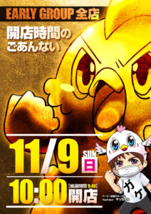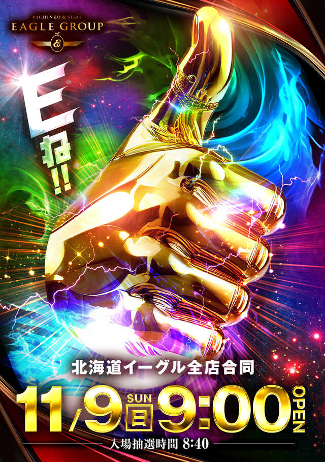 【11/9】DOKO行く?まとめ(雪ニモ夏ノ暑サニモマケヌ) DOKO行く? 2025.11.08 イーグル 北41条店 HAPPY 厚別店 南6条,西宮の沢店 厚別通,栄町店 手稲前田,屯田四条店 マルハン 札幌北店 月寒店 ひまわり 駅前タワー店 ベガスベガス 発寒店(なおきっくす来店) ライジング 元町店(しおねぇ来店) 琴似店(無職ちゃん来店) アーリーバード藻岩店 メガエムズ1(玉城マイ来店) おわりに 「9」の付く日。イーグルの特定日。雪が降ったこともあり大分外抽選&待機のお店はきつくなってきましたね……。冬だけモバイル抽選にはできないものですかね……。寒い……。