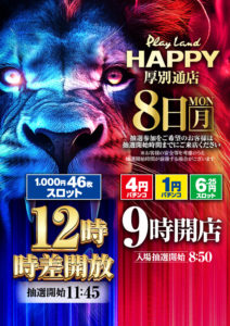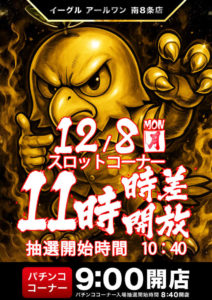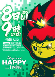 【12/8】DOKO行く?まとめ(これでだめなら?) DOKO行く? 2025.12.072025.12.08 TAIYO苗穂本町店(周年) HAPPY 藻岩,八軒,西町店 西宮の沢店 東苗穂,屯田四条店 厚別通店 栄町店 南6条店 二十四軒店 白石店 ライジング 元町店(VEPPAN) イーグル R-1南8条店 麻生店 ひまわり 豊平店 真駒内店 マルハン 琴似店 ベガスベガス 大谷地店(こにたん来店) おわりに 「8」の付く日。HAPPY&ライジングの特定日。ライジング元町がVEPPAN&ビジュアルレインボー?でリニューアルあったばかりなのでやる気が見えますかね……??